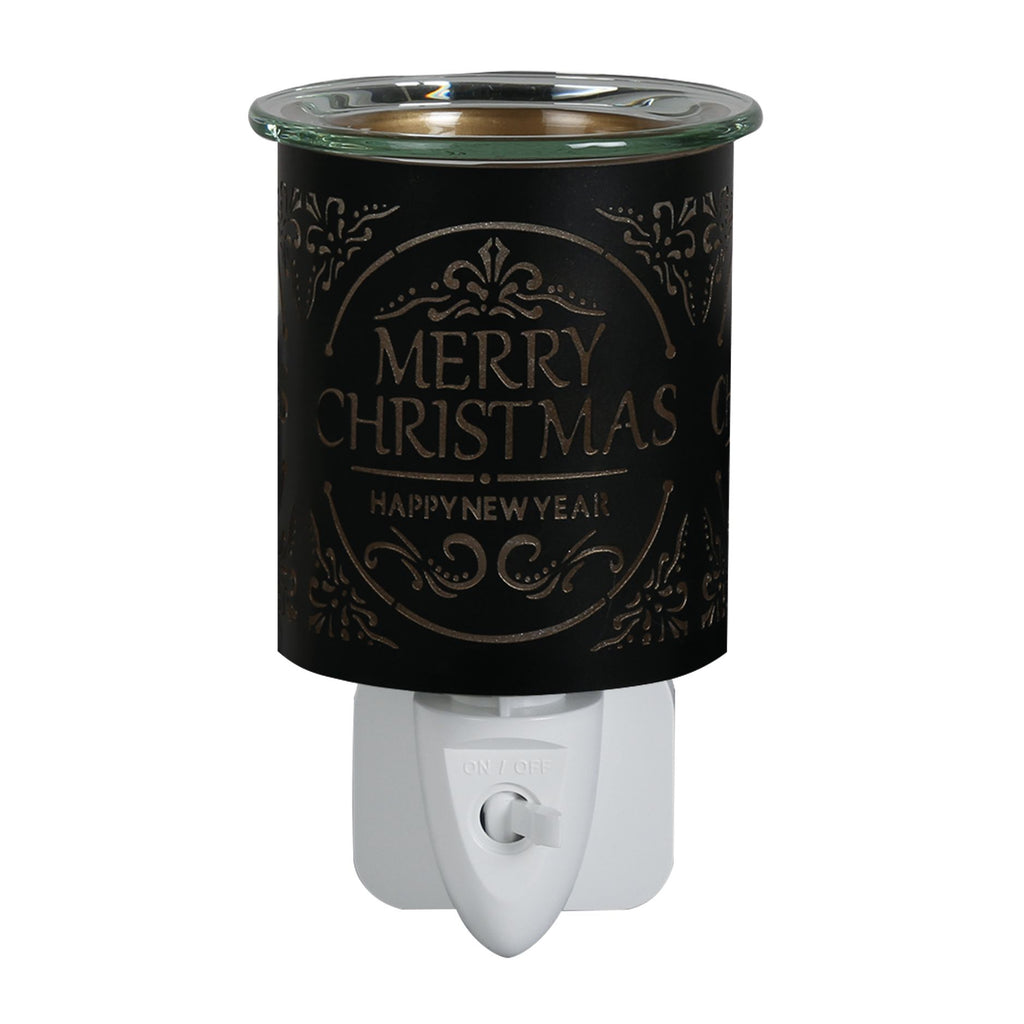 Wax Melter Plug In - Black & Gold Silhouette Merry Christmas 13cm