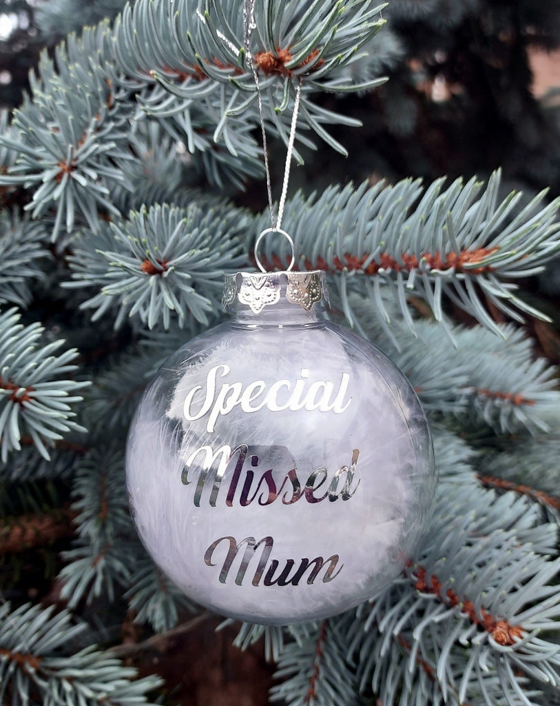 Remembrance Clear Feather Bauble Special Missed Mum Christmas Gift